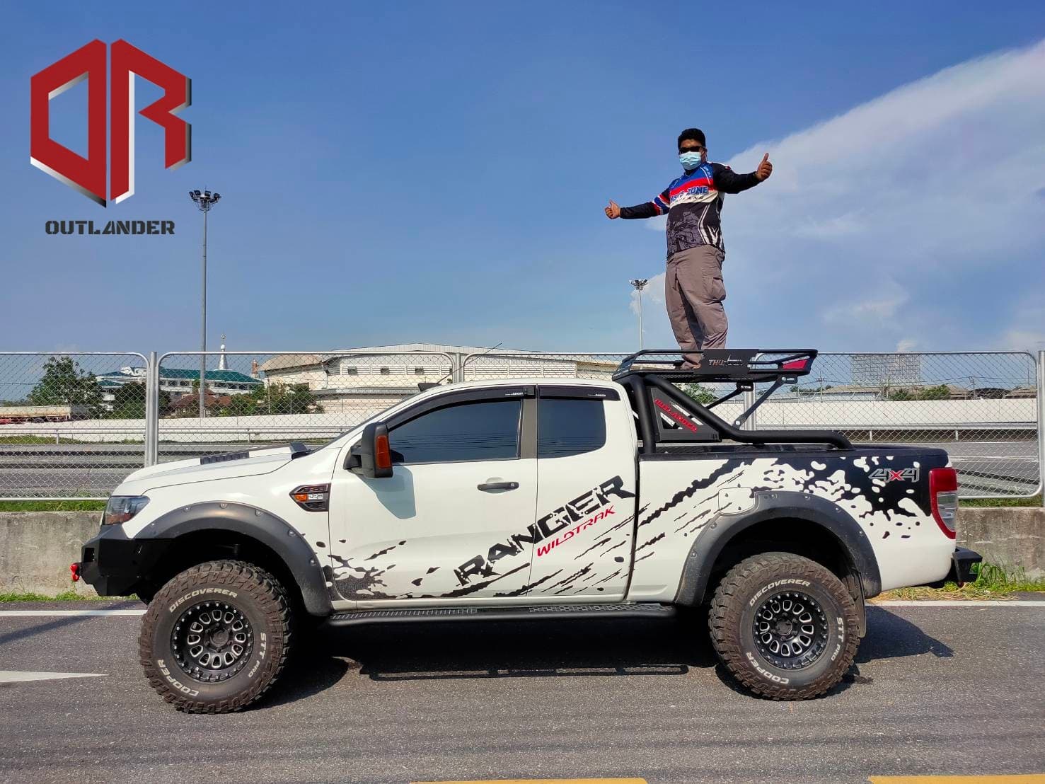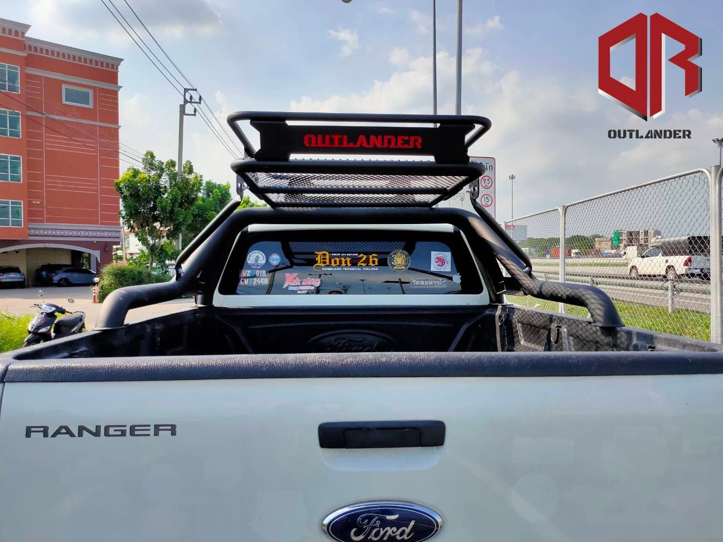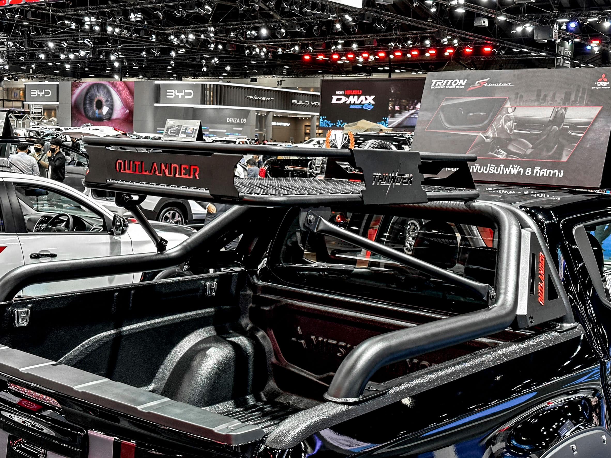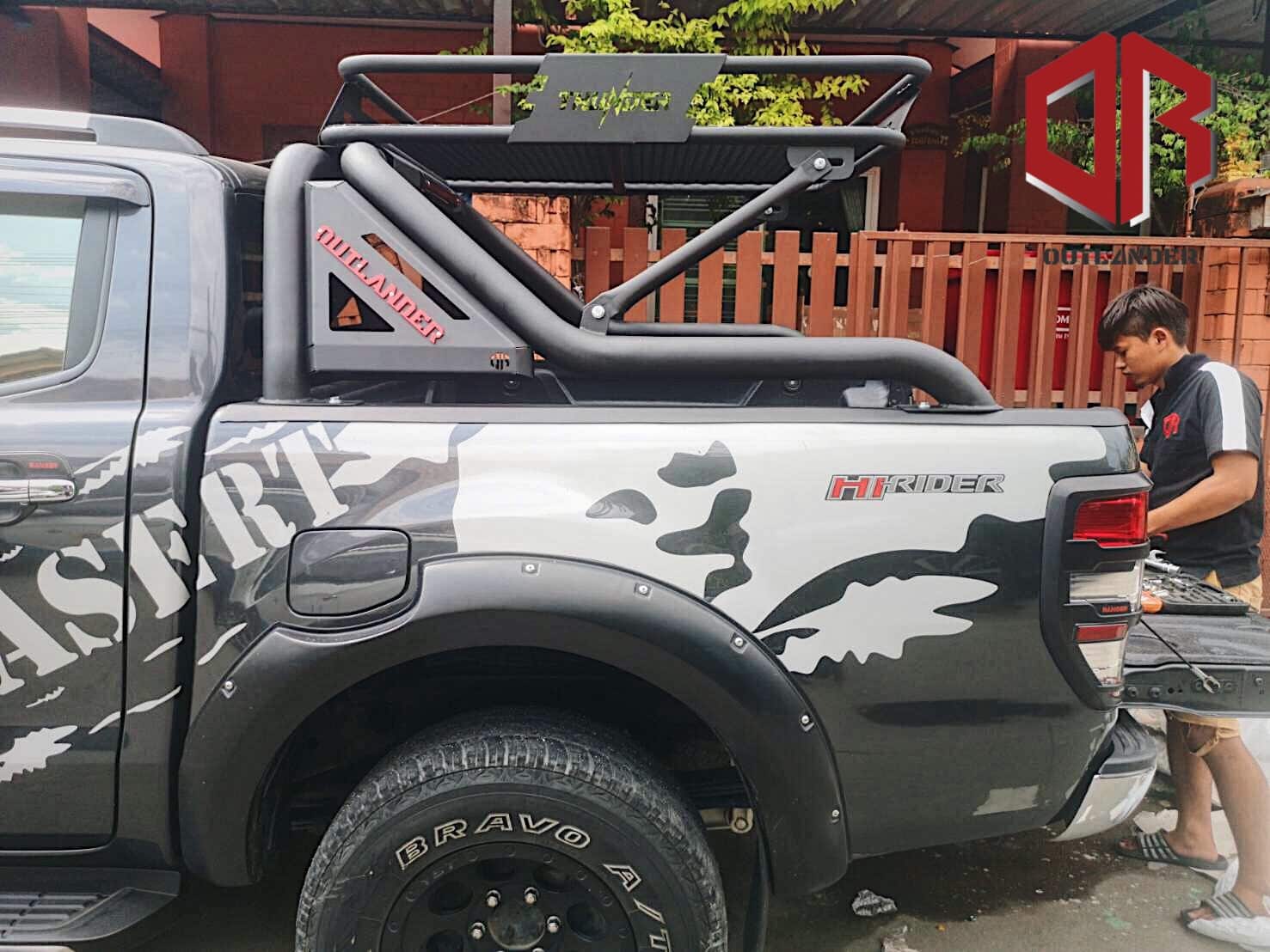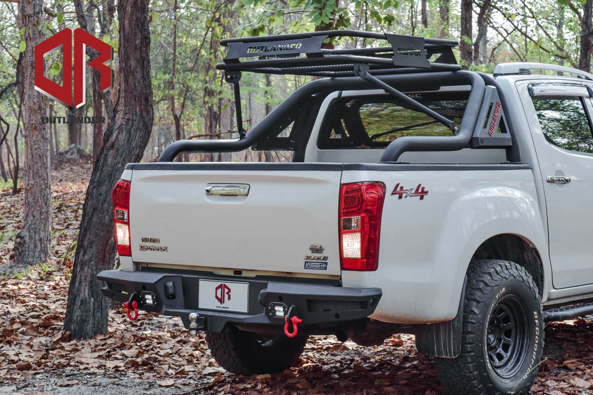 Dotées d’un style off-road avec un treillis et les logos rouges THUNDER et OUTLANDER en arrière-plan, ces galeries peuvent supporter plus de 200 kg. Elles mesurent 85×120 cm avec une hauteur de 15 cm. Le produit est fini avec un revêtement en poudre noire. Pesant 20 kg, il est fabriqué à partir de tubes de 1 et 1,2 pouces avec une barre centrale.