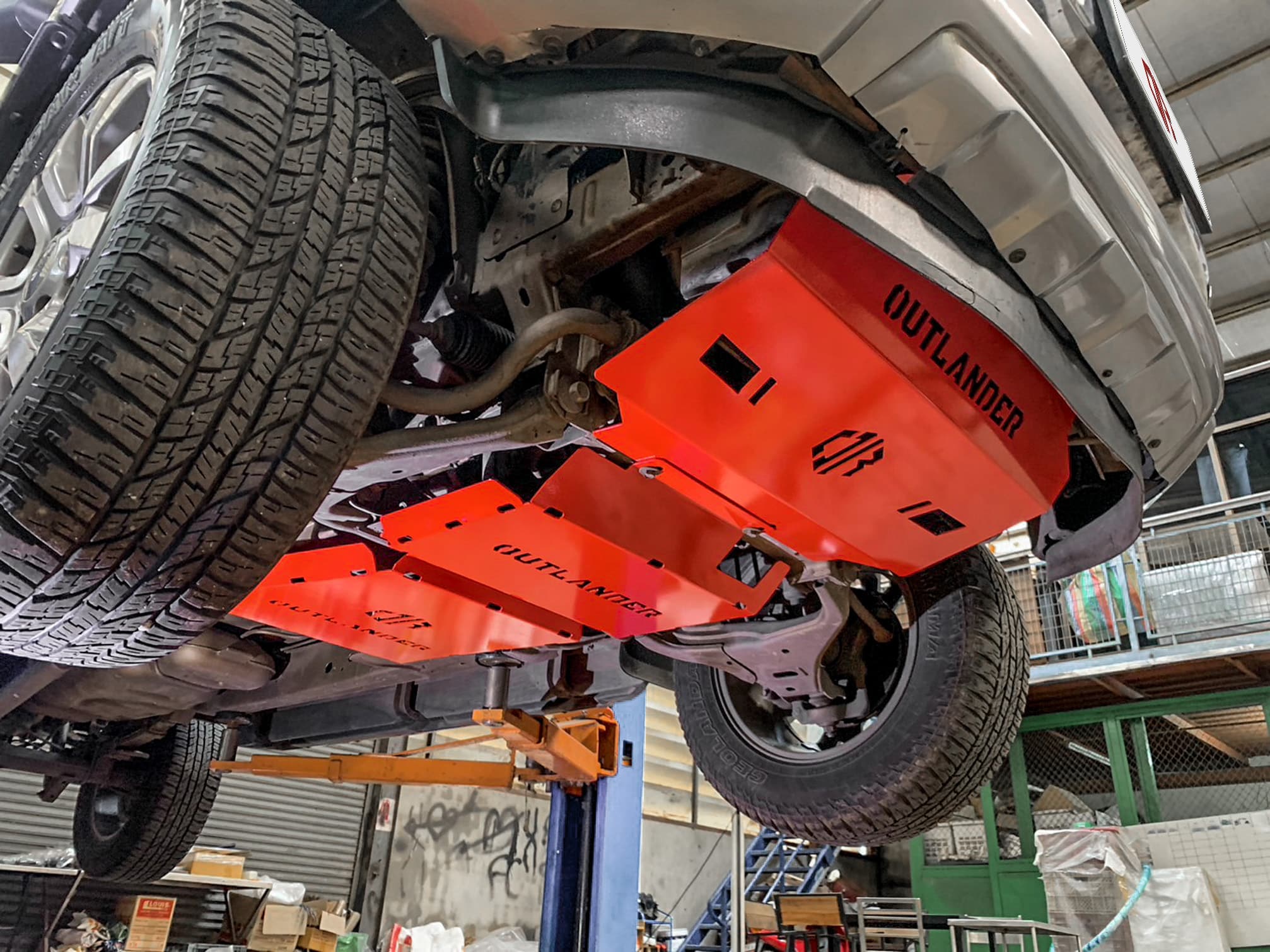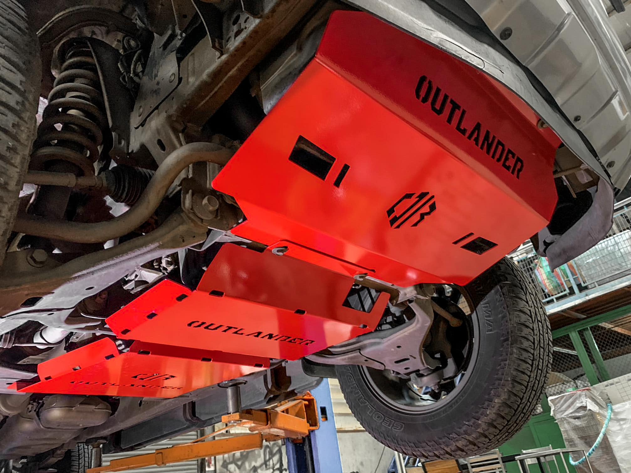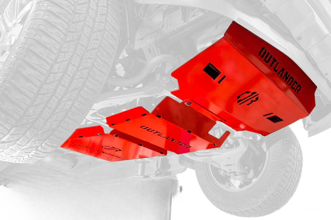 - Plaque Avant : Protège le moteur et le radiateur
